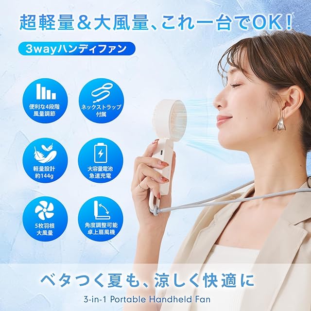 【cicibella2025夏新型新色携帯扇風機登場!】SNSで話題の小型扇風機!ハンディファンだけでなく、卓上扇風機、首掛け扇風機3つの機能を同時に兼ね備えています。