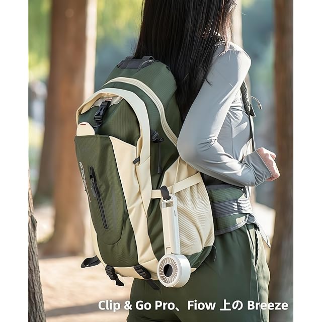 [90° 折りたたみデザイン ×3 モード切り替え] 扇風部を 90° 折りたたむことで、ハンドヘルド、首掛け、卓上の 3 つの使用モードを簡単に切り替えられる「リズム ハンディファン 2025」。コンパクトサイズ(7.5×2×7.7 インチ、148g)でポケットやバッグにスッと収納可能で、バックパックにクリップ固定も可能。
