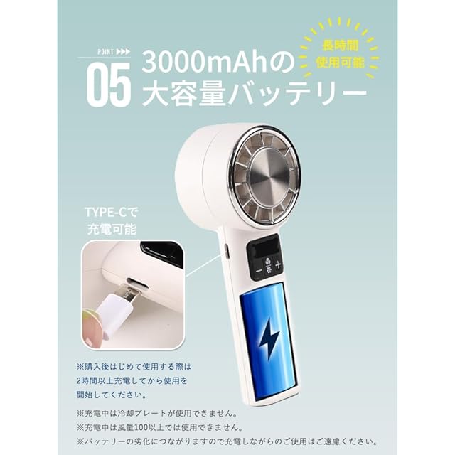 [リズデイズ] ハンディファン 冷却プレート 199段階 大風量 ハンディ 扇風機 小型 爆風 強風 冷却 充電式 (スノーホワイト/ピンクゴールド)