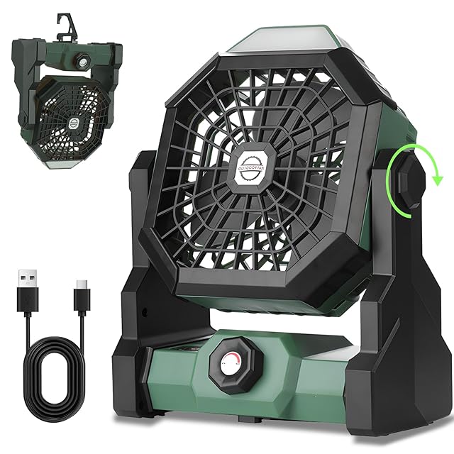【大容量キャンプ扇風機&LEDライト】この携帯扇風機は、ライトを備えており、暗闇でもランタン代わりとして使用できる3段階の明るさ切り替え機能を搭載しています。7800mAhの大容量リチウムイオンポリマー電池を内蔵しており、フル充電時には扇風機として最大20時間、LEDライトとして最大100時間の使用が可能で、1日中屋外で使用しても充電なしで利用できるため、モバイルバッテリーを持ち歩く必要がなく、荷物を減らすことができます。使用時間は充電状態や使用環境によって異なる場合があります。