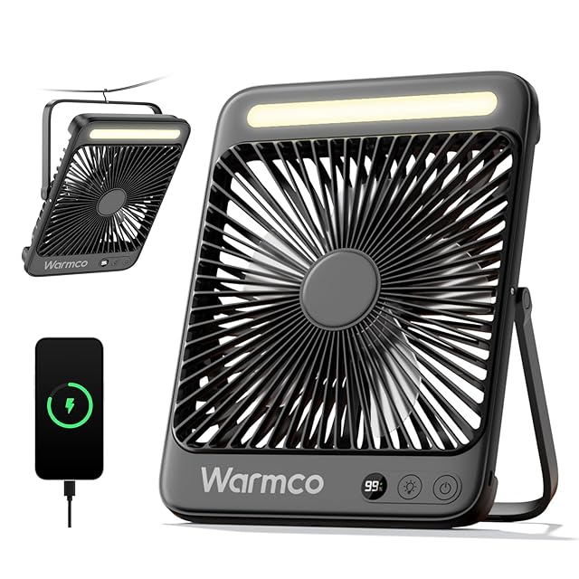 折りたたみ式スタンド付きのコンパクトでポータブルなデザイン:厚さわずか1.75インチ、重さはわずか1.8ポンドです。 折りたたみ式スタンド付きで、ファンは簡単に配置でき、最も必要な場所に直接風量を調整できます。 バックパック、テント、その他の狭いスペースに簡単に収まります。 省スペース設計により、従来のキャンプファンのかさばりをなくし、手間をかけずに涼しく快適に過ごせます。