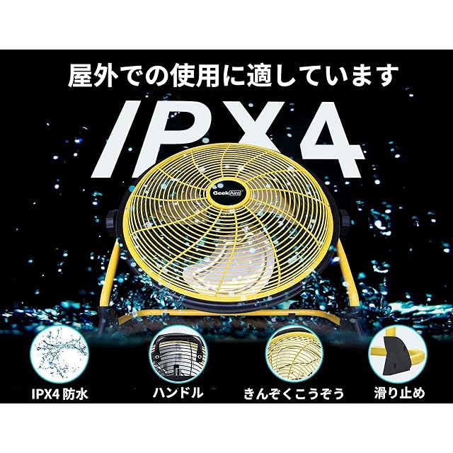 アウトドアに最適:ポータブルなデザインにより、この充電式キャンプファンは屋外での使用に適しています。バーベキュー、釣り、アウトドアスポーツなどのアウトドア活動に最適なキャンプ用アクセサリーです。過酷な環境でも使用できる、金属製の頑丈な構造です。
