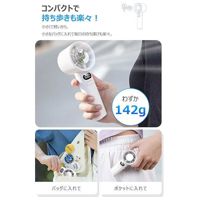 【強力送風・風量が120段階調整でき、最適な設定が可能】空気力学に基づいてデザインされた超小型ヘッドは、6枚の羽根が搭載され、風力の分散を抑制し、通常のハンディファン よりも優れた送風効率があり、より快適で豊かな風を提供します。ボタンを押すだけで、風量を120段階で細かく調整できるため、シーンに合わせた最適な風で使用できます。心地よい自然風で蒸し暑さを解消し、暑い夏でも心地よく過ごせます。