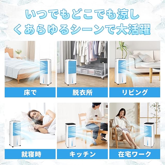 『多機能・送風・冷却・加湿・空気清浄』送風、冷却、加湿など1台多役機能を揃えている冷風機は、水が蒸発する時に周辺の熱を奪う気化熱を利用して冷風を出します。ミストが出て心地いい涼しさを感じられるものや、冷房や空気清浄機能がついていて一年中活躍する冷風扇風機です。家庭用として大容量の冷風機です。普通の扇風機より涼しく感じる、乾燥しにくい方、お子様、女性、ご年配の方などにおすすめです。