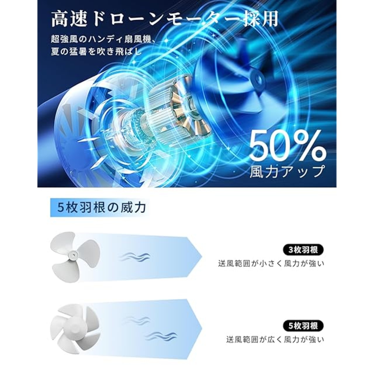 【Type-C充電式扇風機&強力送風】4000mAh大容量バッテリーを内蔵し、モバイルバッテリーやパソコン、USB充電器に接続すれば繰り返し使えるミニ扇風機です。約4時間で満タンになり、最大12時間連続送風可能。高速回転モーターと5枚羽根を採用し、空気力学に基づいた超小型ヘッドは風力の分散を抑え、力強く送風します。