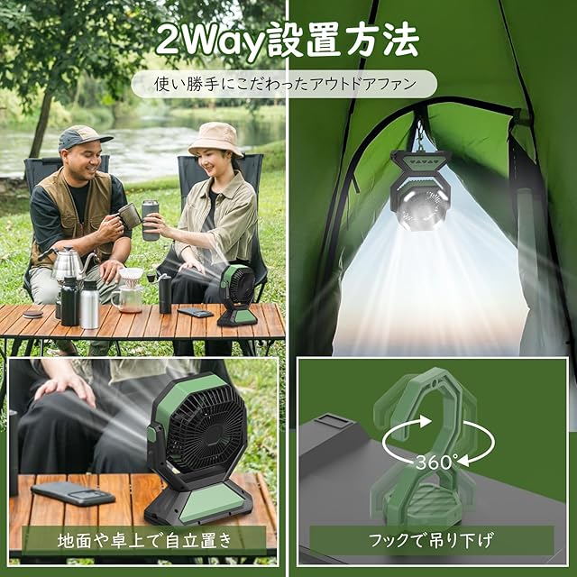 「夏を快適にしてくれる最強な扇風機」 夏の暑さを和らげられて涼しく過ごすのに欠かせない必須なアイテムであるキャンプ扇風機となります。風を浴びて身体を涼めたり、熱をこもったテント内の空気を循環してくれたり、焚き火の火おこしにも役に立ってて、虫よけ対策としても活躍してくれて、夏のキャンプにより快適にお楽しみいただけます。