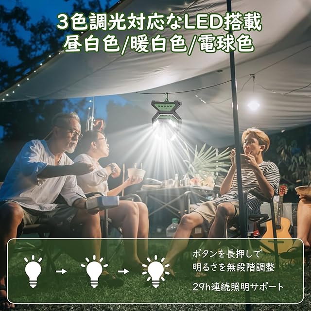 「多機能を兼ね備える最強の一台」2つ10000mAh(合わせて20000mAh)大容量バッテリー内蔵されて、USB出力ポート付きで停電や急な電池切れになったときにモバイルバッテリーとして役立つ他のデバイスを充電することも対応してくれます。暗い場所でも便利なLEDライトも搭載してあり、3色の光源より無段階の明るさモードを調整できます。就寝時の使用に便利で必要に合わせて1H/2H/4H/8H設定できるタイマー機能もついてあり、バッテリーの残量表示ランプも見やすく搭載しているなど多機能を備えて使い勝手にもこだわった最強の一台です。