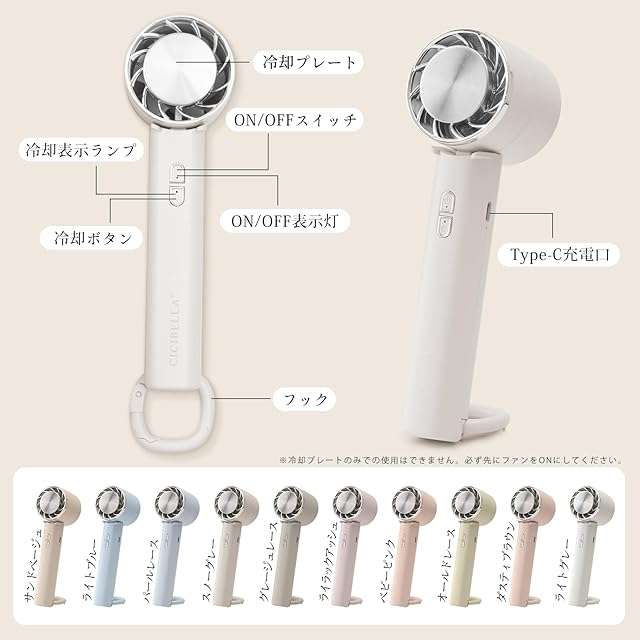 cicibella ハンディファン 冷却プレート モバイル usb 扇風機 充電式 携帯扇風機 静音 強風 冷却ハンディ扇風機 3段階風量調節 ?量 ミニ ポータブルファン 接触冷感 暑さ対策 卓上 ハンディせんぷうき扇風機