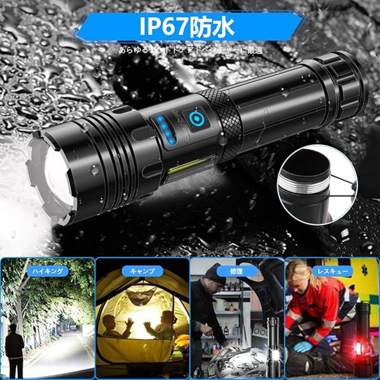 【超高輝度 30000ルーメン 懐中電灯 led 強力 軍用 最強】このフラッシュライトには、超明るXHP70.2 LEDチップが装備されており、驚くべき30,000ルーメンを提供しています。暗い荒野を歩いても、緊急事態に直面しても、このハンディライトは夜を昼に変える強烈で広範囲に届くビームを提供します。精密に設計されたLEDは、安定した鮮やかな光出力を保証し、最高の性能と信頼性を求める人に欠かせないツールとなっています。