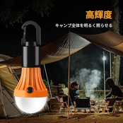 【高輝度電球型ledランタン】高輝度ledチップ搭載、キャンプ全体を明るく照らせます。上部は頑丈なクリップフック付きて吊り下げ使用可能。led電球と同じの形で、電球のように高所から広範囲を照らすことができます。