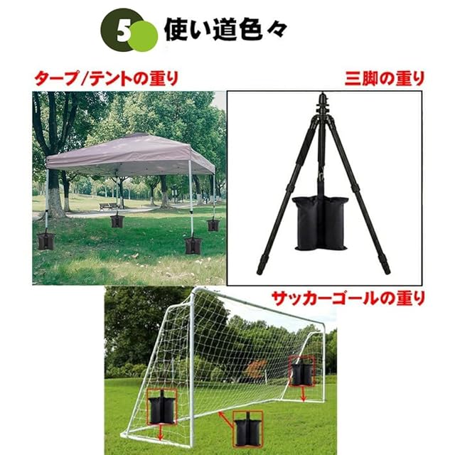 【 使いやすい設計】ウエイトバッグは、頑丈なマジックテープが装備されています。テント やタープポールを簡単に掴めできます。