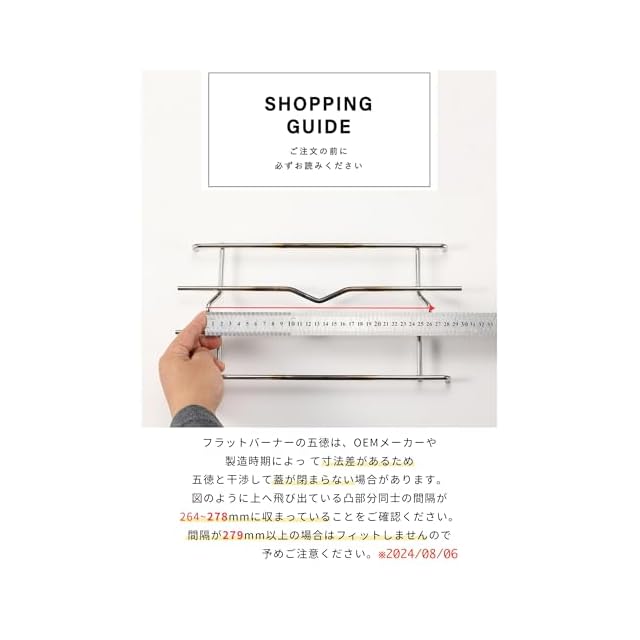 本体はフラットバーナーやIGTトレーに被せることが出来ます(※一部韓国製のフラットバーナーの五徳と干渉してしまい、上手く閉まらない事象が確認されています)。これによりテーブルの有効面積を最大限に使えるほか、スタッキングの際も嵩張りません。※フラットバーナーはつきません。また、IGT規格テーブルは寸法差がメーカーによってありますので、ご購入前に必ず寸法をご確認下さい。特に、フラットバーナーを装着した状態でまったく動かないジャストフィットのテーブルの場合(隙間が全くない)、フタが被せられない可能性が高いです。詳しくは5枚目の画像をご参照ください。
