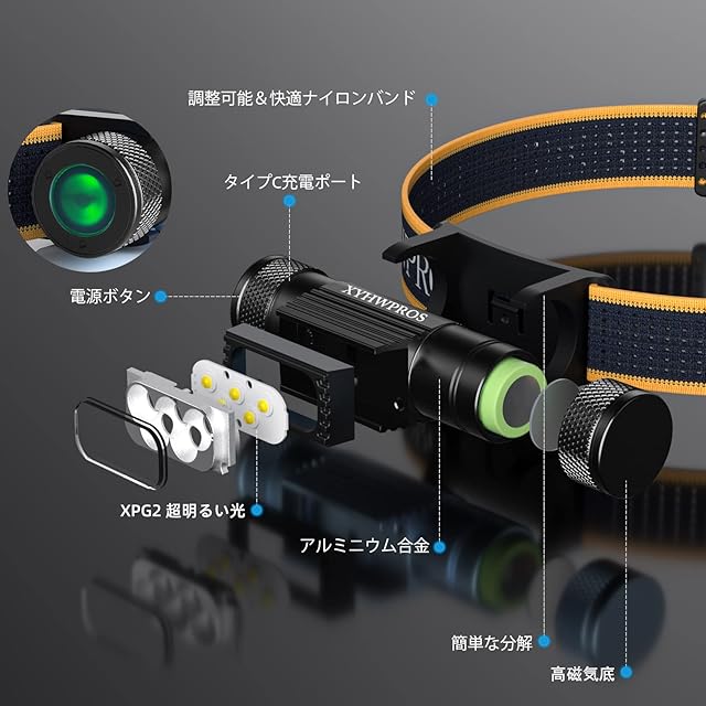 【耐久性と幅広い用途】防水性と防塵性を備え、耐久性のある航空機グレードのアルミニウム製で、防水性と耐衝撃性を備えた設計です。調節可能で伸縮性のあるヘッドバンド付きで、着脱が便利です。当社のヘッドランプはより便利でかさばらず、キャンプ、釣り、ハイキング、トレッキング、ハンティング、地図の読書、夜の釣り、夜の飛行、セーリング、洞窟探検などでより快適な体験を提供します。