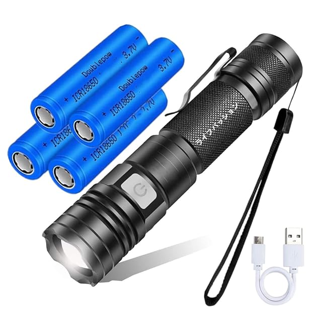 4本 突起なし 電池のみ 18650 充電 リチウム PSE認証済み 2000mah 18650バッテリー LED懐中電灯 軍用 最強1600ルーメン ズーム 超強力 小型USB充電式 アルミニウム合金材質 軽量小型 明るい ハンディライト SOS防水