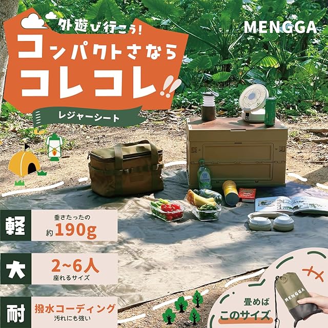 mengga レジャーシート 防水 ピクニックマット 大判 140x200cm 3〜6人用 折り畳み コンパクト 洗える 座布団 防湿 屋外 キャンプ 花見 運動会 ビーチシート 四季適用 簡単収納 持ち運び便利 室内用可 (140×200CM)