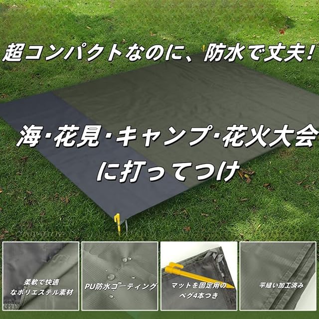 アウトドアを楽しむための必需品として、レジャーシートやゴリラシートは欠かせないアイテムです。特に、広げると140cm × 200cmのサイズを誇るこのレジャーシートは、家族や友人との楽しいひとときをサポートします。3〜6人が座れる広々としたスペースを確保しており、4人家族でも全員がゆったり座れる設計になっています。さらに、2〜3人が横になってくつろぐこともできるため、フロアシートとしてカップルのデートシーンにも最適です。1人用レジャーシートや2人用レジャーシートを探している方も、ぜひどうぞ。 楽々持運び 使用後の収納もとても簡単です。17cm × 14cm × 7cmのコンパクトサイズに折りたたむことができ、これはスマホより一回り大きい程度です。重さは約190gで、文庫本1冊ほどの軽さなので、バッグにすっきり収まります。これにより、アウトドアでの荷物を気にせずに持ち運ぶことができ、ピクニックシートとしてのピクニックやキャンプでも負担になりません。 抜群の防水性 このレジャーシートは防水性に特化しており、シートの裏面には防水PE膜が施され、3000パスカルの高い防水性能を持っています。これにより、濡れた地面でも快適に過ごすことができ、急な雨が降っても安心です。アウトドアやピクニックで大活躍すること間違いなしで、急な雨の際には簡易的な雨具やフライシートとしても活用できます。このようにレジャーシート防水機能を備えていることで、アウトドアのシーンで安心して楽しむことができます。 汚れに強い 210Tポリエステル素材で作られており、超柔らかい触り心地が特徴です。キャンプ中に食べこぼしや泥がついても、さっと拭くだけでお手入れが簡単に行えます。汚れを気にせずに使えるため、アウトドアでの思い出作りを心から楽しめます。このようにレジャーシートは、手軽にメンテナンスできるので、いつでも快適に使用することができます。 活用シーン このレジャーシートは、さまざまなシーンで活躍します。春には桜の下でピクニックマットとして、家族や友人と楽しいひとときを過ごし、夏には海での花火大会に持っていくことができます。また、秋には運動会でお子様の応援に使えるため、四季を通じて楽しむことができます。こうした用途から、あなたのアウトドアライフを豊かにするアイテムとして、このレジャーシートをぜひ取り入れてください。 単なるレジャーシートではなく、「picnic mat」や「フロアシート」としても、様々な機能を兼ね備えたマルチアイテムです。バーベキューやピクニック、海での使用など、あらゆるシーンで頼りにできるレジャーシートを手に入れて、楽しいアウトドアライフを満喫しましょう。