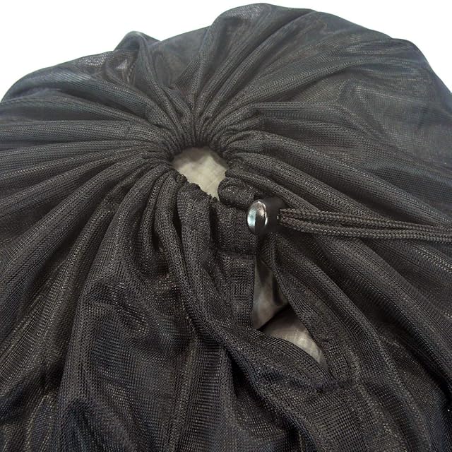 通気性がよく長期保管に最適。ダウン製品の自宅での保管に便利なメッシュバッグ。開口部はストッパー付きのドローコード仕様です。