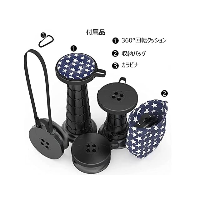 【使い方超簡単・耐荷重200KG】●収納するときは逆方向に少しひねりを入れながらスツールの両端を押すだけで一瞬で収納可能。●伸縮式チェア本体は1kgしかないにもかかわらず、頑丈なABSとポリアミドを採用したので、最大荷重は200kgにも達しています。軽量で携帯しやすくて、構造も安定しています。