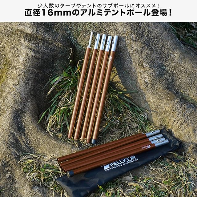 ✅【直径16mmのアルミテントポール】 少人数で使用するタープやサブポールに最適な直径16mmのテントポール。材質はしっかりと支えられるように強度あるA7075超々ジュラルミンを採用。分割式になっているので収納時の長さは37cmというコンパクトサイズに設計。デイバッグにも入るサイズなのでツーリングでキャンプする方にもオススメ。