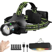 【インテリジェント誘導モード+伸縮ズーム機能+130角度調整】高感度、正確な赤外線インテリジェントセンサーを内蔵し、動作を正確に識別し、迅速に反応することができる。第1モードでスイッチを3秒間長押しするだけでセンサーモードに素早く入り、センサーの前(10 cmの距離内)で手を振るだけでオン/オフできるので、使いやすい。伸縮ズーム機能、超広角照明/超遠距離照射を実現し、異なる照明需要に適応する。130°の柔軟な角度調整機能があり、さまざまなシーンでの照明要件を満たすために、光の方向を自由に調整できます。アウトドア用、キャンプ、夜釣り、登山、工事用、作業用の最適な照明ヘッドライトです。