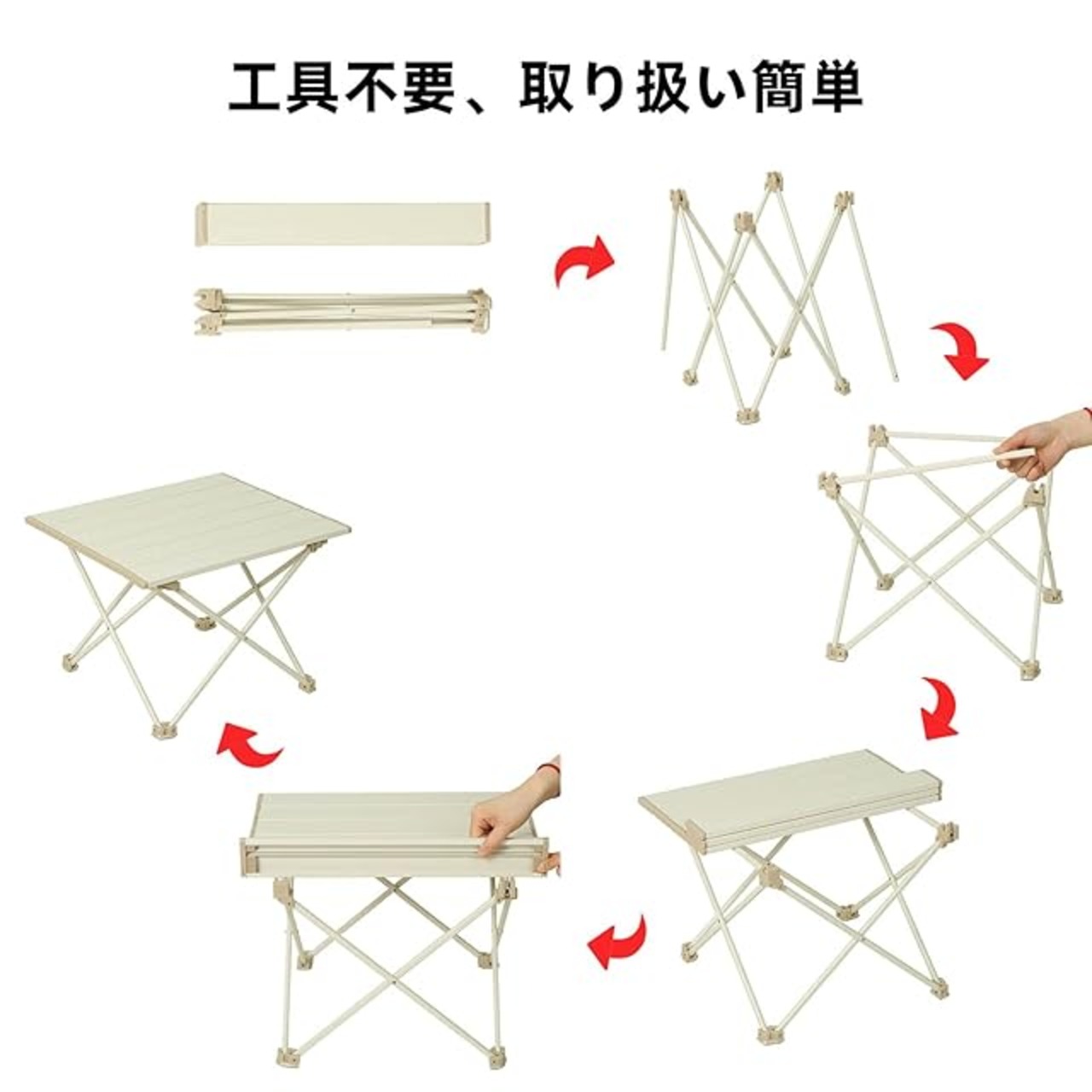 【アップグレード版】改良された一体式のヒンジで天板を連結、従来の弾性ロープで接続されたテーブルよりもっと耐久性と安定性に優れます。また超軽量アルミニウム合金を採用され、耐熱、頑丈で耐久性に優れます。天板表面は表面はスプレー処理され、防水、錆止め、防酸化などの特徴あり、お手入れも非常に簡単です。