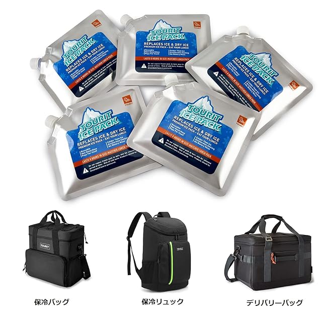 TOURIT アイスパック ふたなし 保冷剤 再利用可能 ソフトタイプ 注水タイプ 氷点下 BPAフリー 無毒 薄型 クーラー用 ク ーラーバッグ用 クーラーボックス 長持ち キャンプ お釣り アウトドア (5個セット)