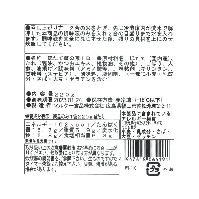 [冷凍] マルケー食品 ほたて飯の素 IB 220g×3