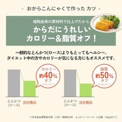 豆乳を搾る際の副産物「おから」と日本伝統食「こんにゃく」を組み合わせて作った肉のような食感が特長のこだわりカツ(業務用規格 10個入り)。さまざまな食材やソースと合わせて味の変化が楽しみやすいシンプルで飽きの来ない味付けに仕上げました。