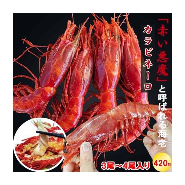 ”赤い悪魔”と呼ばれる海老 カラビネーロ 特大サイズ 3尾〜4尾入り 420g 業務用 ジャイアントスカーレットシュリンプ 紅魔海老 オオミツトゲチヒロエビ 巨大 船内凍結 有頭えび 海老 プリプリ バーベキュー えび 冷凍エビ