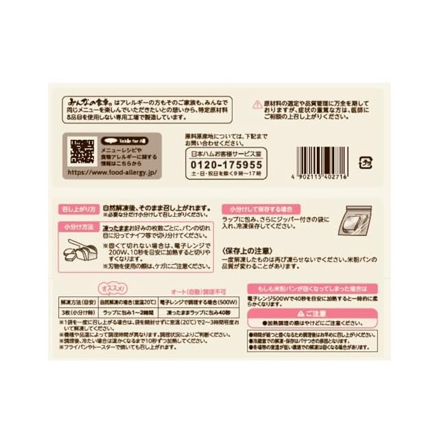[冷凍] 日本ハム みんなの食卓 ふっくら米粉パン 270g