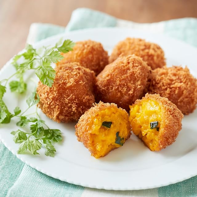 原材料:牛乳(国内製造)、かぼちゃ(北海道)、バター、小麦粉、ココナッツミルク、砂糖、クリーム、わらび餅粉、食塩、香辛料、衣(パン粉、バッター粉(小麦粉、でん粉、デキストリン、ショートニング、クラッカー、植物油脂、砂糖、植物性たん白、植物繊維、大豆粉))、揚げ油(なたね油)