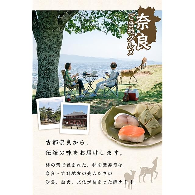 奈良・名産の 柿の葉寿司 を 冷凍 でお届け。電子レンジで温めて食べる 蒸し寿司 タイプの商品です。