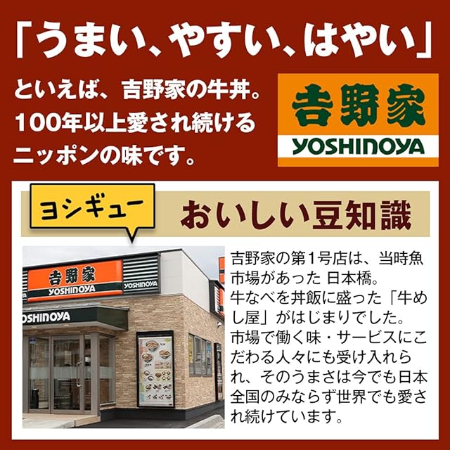 【ご家庭で「吉野家」の味が楽しめる】吉野家の“いつもの味”を、簡単・手軽にご家庭で。創業以来受け継がれる「秘伝のタレ」で味付けし、出来立てをパック詰め後に急速冷凍。お店の本格的な味わいをそのままお届けします。