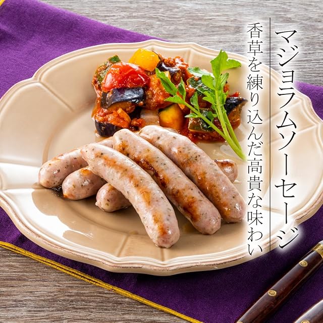 <創業百年>主要ホテルなど一流たちが認め採用している「麻布 日進ハム」の贅を尽くした詰め合わせをご堪能ください。 本製品は、創業百年のノウハウで培った職人セレクトによる、ドイツ製法4種類のソーセージの詰め合わせです。主要ホテルの朝食用に開発されたマジョラムソーセージ、トルネードソーセージなどの食べ比べをお楽しみ頂けます。