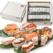 ゐざさは1921年(大正10年)に奈良・奥吉野で創業した柿の葉寿司の老舗です。創業当時は米屋だったので、秘伝の酢と出汁で仕上げた寿司シャリがこだわりの一つ。 柿の葉寿司の老舗がノウハウを生かして作り上げた「笹蒸し寿司」は、上方の寿司文化「蒸し寿司」を現代風にアレンジした逸品です。 ネタは、穴子、うなぎ、ほたて、たい、焼さば、うなぎなど計9種類。電子レンジで温めてお召し上がりください。包みを開いた時に広がる笹の薫りもお楽しみいただけます。