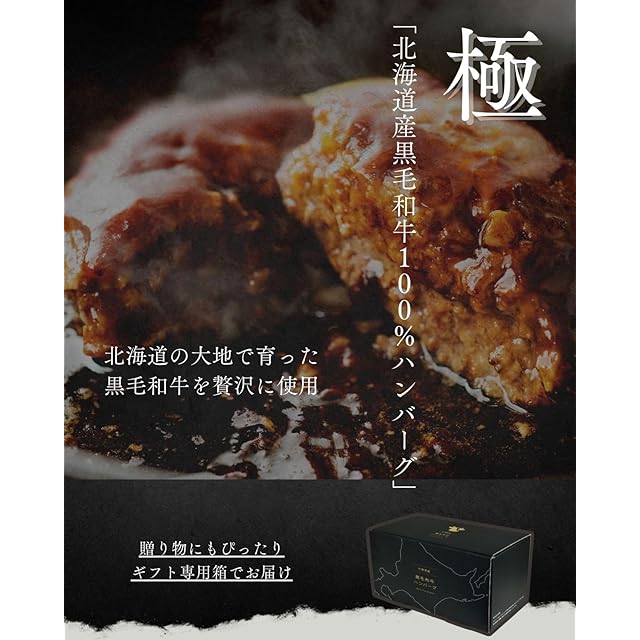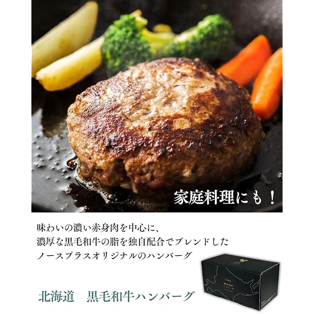 【北海道産黒毛和牛贅沢使用】北海道地方の自然と、北の大地が育んだ経産牛黒毛和牛を贅沢に使用した北海道黒毛和牛100%ハンバーグです。【産地特徴】北海道産黒毛和牛(経産牛)は豊かな畑や酪農地で育まれた自然の恵みに囲まれた地域で育ちました。昼夜の寒暖差が大きいことから美味しい農作物が育つ地域としても有名です。【家庭料理にも!】味わいの濃い赤身肉を中心に、濃厚な黒毛和牛の脂を独自配合でブレンドしたノースプラスのオリジナルのハンバーグです。老若男女問わずに美味しくお召し上がりいただけます。【贈り物にもぴったり】贈り物はギフトにもピッタリなギフト専用箱でお届け!【冷凍での焼き方】① 冷蔵庫で解凍します。② フライパンで強火3?4分焼きます。③ 焼き目がついたら逆面も同様に3?4分焼きます。④ 両面焼き目がついたら、弱?中火で4?6分蒸し焼きにします。※竹串で刺して透明な肉汁が出てきたら火が通った証拠です。⑤ 火から上げて数分間休ませたら完成です。肉汁が落ち着き美味しくいただけます。