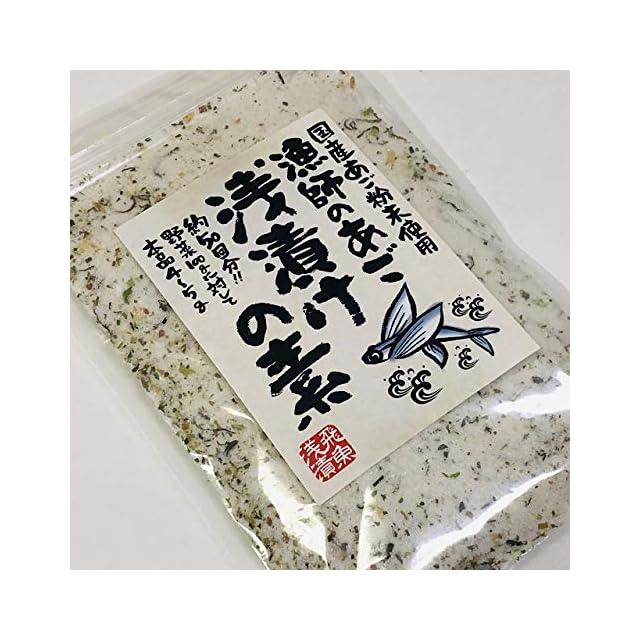 あごが落ちるほど美味しいといわれるあごの削り節粉末と天塩の焼塩、昆布、あきあみ、めかぶ、鰹節を混ぜ合わせた美味しい浅漬けの素です。