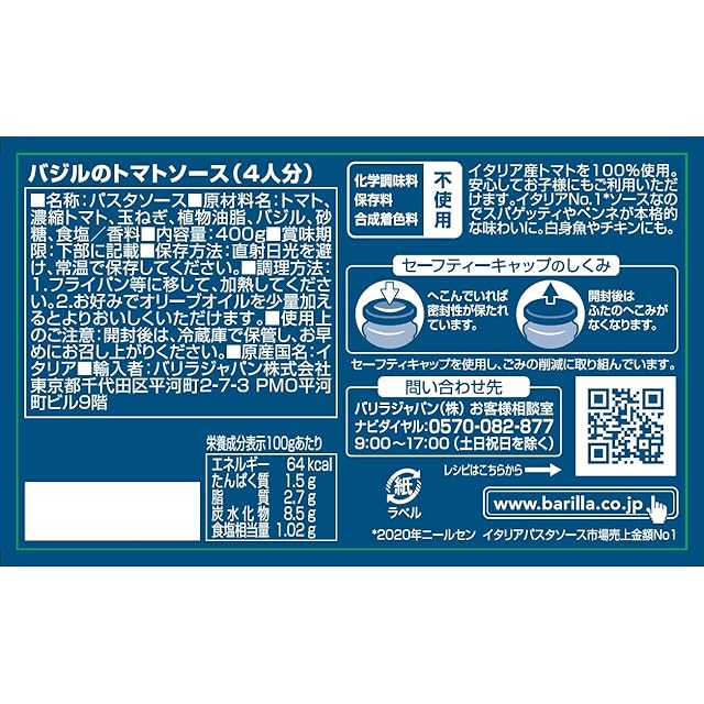 信頼:バリラでは、1877年の創業以来、パスタに情熱を注ぎ、その情熱を世界中に伝えてきました。バリラでは、「あなたに良いもの、それは地球にも良いもの」という想いでパスタやソース作りに励んでいます。
