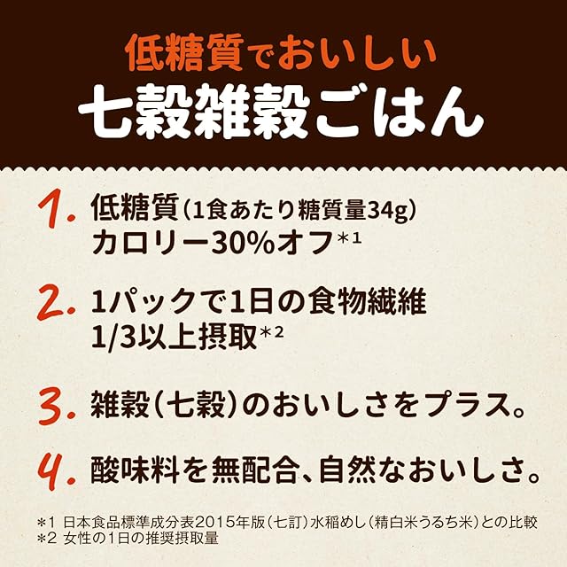 原材料:米(国産)、もち大麦、大麦、還元難消化性デキストリン、小豆煮汁、赤米(国産)、もちきび、黒米(国産)、アマランサス、キヌア