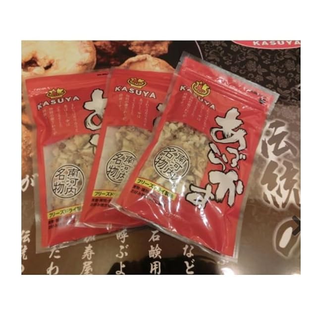 「油かす」とは大阪の南河内地方で昔から食されてきた郷土料理です。 牛の腸を油でじっくりと時間をかけて揚げ、余分な油分が抜けて肉の旨味が凝縮された、美味でしかも栄養価も高い食材です。 まわりはカリカリと香ばしく、中はぷるぷるとした独特の歯ざわりが特徴です。 ◆60g×3袋 ◆フリーズドライあぶらかす ◆南河内名物 ◆牛の濃厚な旨みと香ばしさがクセになる ◆低脂肪でコラーゲンたっぷり ◆うどん、お好み焼き、焼きそば、たこ焼き、もつ鍋、パスタ、などお好みで ◆直射日光・高温多湿を避けて保存してください。