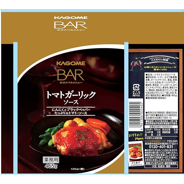 原材料:トマト、ぶどう糖果糖液糖、ガーリックペースト、食塩、乾燥ガーリック、大豆油、ガーリックパウダー、醸造酢、香味油、コーンスターチ、白ワイン、チキンブイヨン、香辛料、酵母エキス/酸味料、増粘剤(加工デンプン)、酸化防止剤(ビタミンC)、(一部に大豆・乳成分・鶏肉を含む)