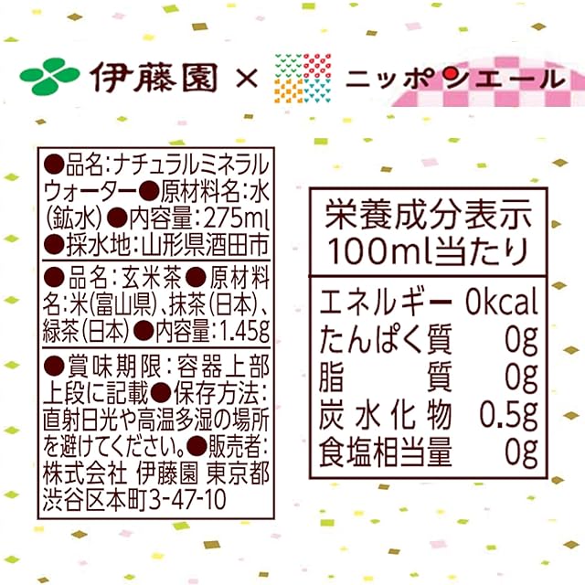 原材料:水(鉱水)、米(富山県)、抹茶(日本)、緑茶(日本)