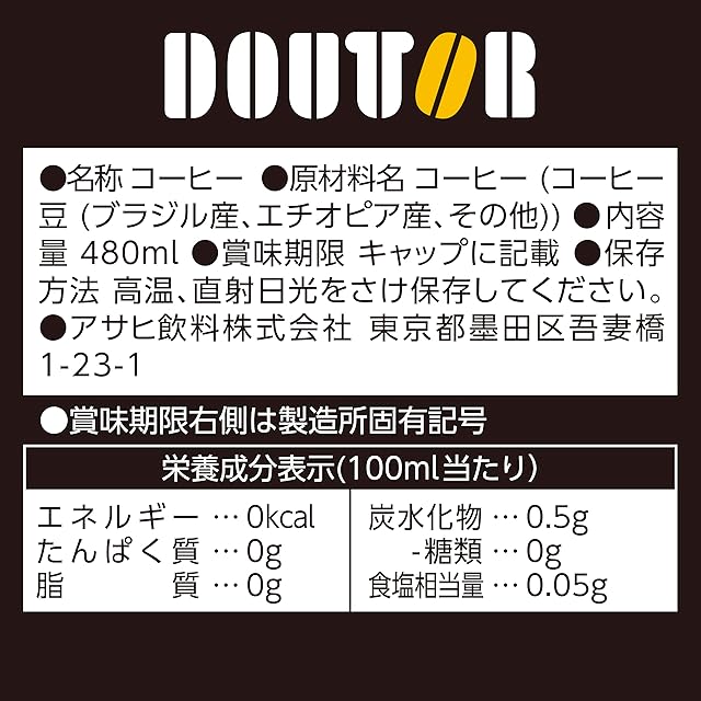 原材料名:コーヒー(コーヒー豆(ブラジル産、エチオピア産、その他))