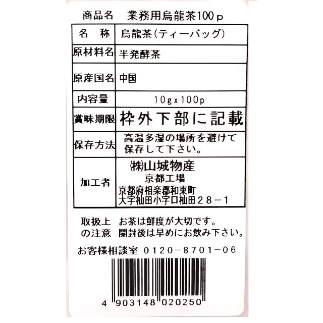 【品名・内容量】ウーロン茶(ティーバッグ)・10g×100P