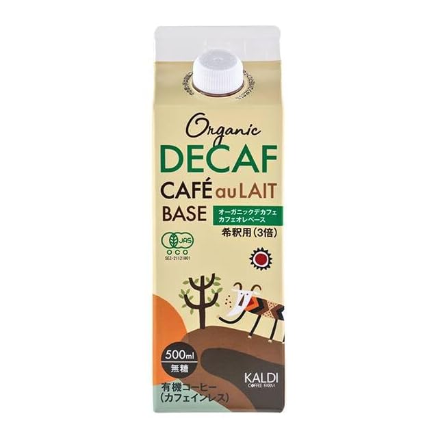 【カルディ】 有機栽培のカフェインレスコーヒーのみを使用したカフェオレベースです。3つの異なる焙煎度合いのコーヒーをブレンドすることで、ビターキャラメルを思わせる甘さと飲みごたえを引き出しました。カフェインを控えたい方、お子様にも安心してお楽しみいただけるカフェオレベースです。