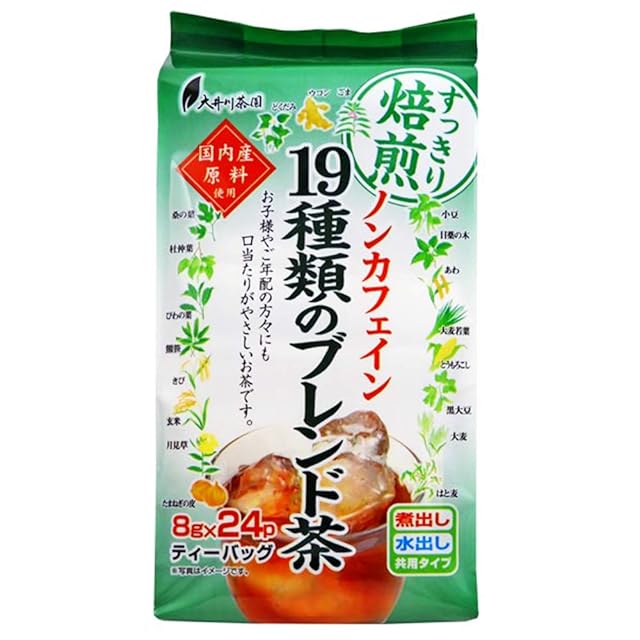 大麦、はと麦、玄米、黒大豆、小豆、どくだみ、たまねぎ皮、熊笹、杜仲葉、桑の葉、びわ葉、ウコン、ごま、目薬の木、あわ、きび、とうもろこし、月見草、大麦若葉をオリジナルの比率で配合しました。すべて国内産を使用しております。ノンカフェインなのでお子様やご年配の方々にも口当たりの優しいお茶です。