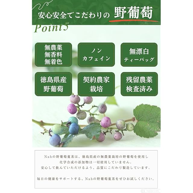 ✅徳島県内の契約農家で無農薬管理栽培された野葡萄の蔓を100%使用した健康茶