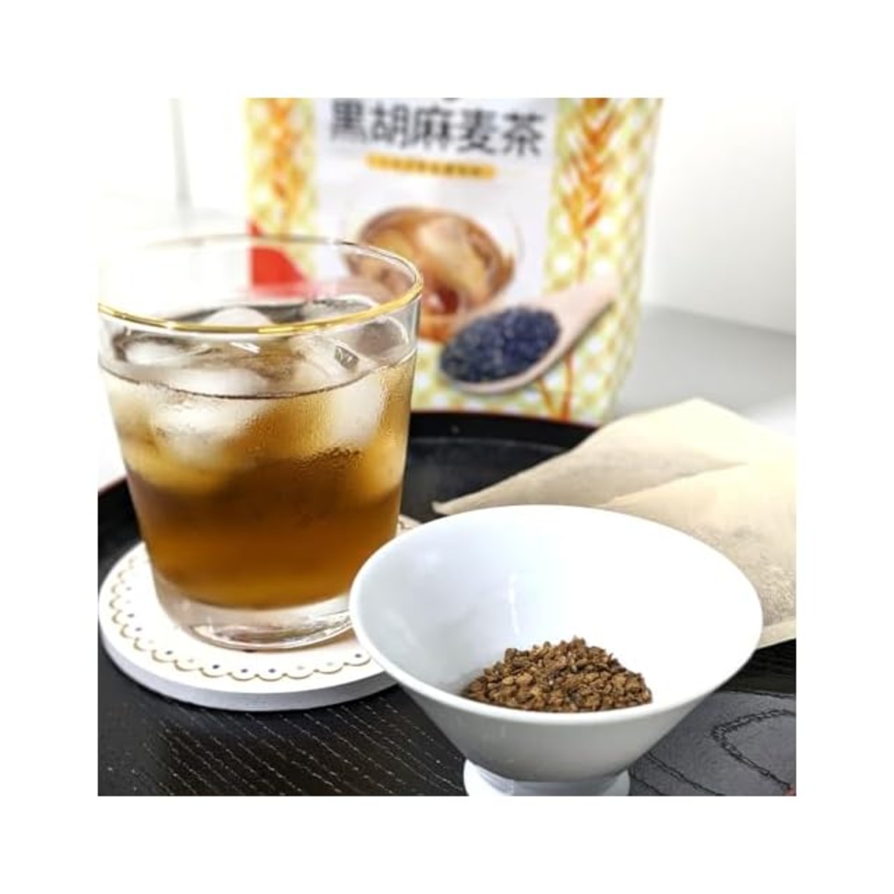 毎日の健康維持に。遠赤四度焙煎製法で、自然の美味しさと香ばしい香りを大切に仕上げた黒胡麻麦茶です。素材を細かく粉砕することで内部に含まれる健康パワーを引き出します。お食事はもちろんスイーツなどにも相性抜群です。経済的な水出しパックで皆さまのヘルシー生活を応援します。安心のノンカフェイン。水出し・お湯出し、いずれも可能です。