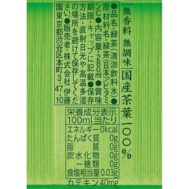 国産茶葉を100%使用した、香り高く、まろやかで味わい深い緑茶飲料です(無香料・無調味)。<br><br><br> 「お~いお茶」 鮮度へのこだわり<br><br> ①鮮度茶葉<br> ・荒茶加工の際に余計な熱を掛けずにフレッシュな状態で香りを保持<br> ・茶園から荒茶工場に運ぶ茶葉を冷却<br><br> ②鮮度火入れ<br> ・マイクロ波火入れにより茶葉内部の水分を乾燥<br><br> ③鮮度物流<br> ・温度、湿度が管理された場所で保管し、必要分のみ飲料製造工場に出荷<br><br> ④鮮度抽出<br> ・抽出直前に茶葉を煎り、香りを引き出す<br><br> ⑤鮮度充填<br> ・内容液や容器内から酸素を取り除く、脱酸素充填