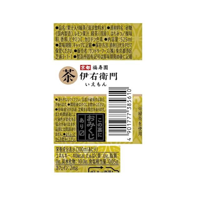 原材料:砂糖(国内製造)、レモン果汁、緑茶(国産)、はちみつ/酸味料、香料、ビタミンC、カロチン色素